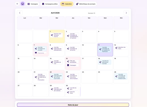 Calendrier éditorial intégré avec rappels pour mieux planifier vos prises de parole.